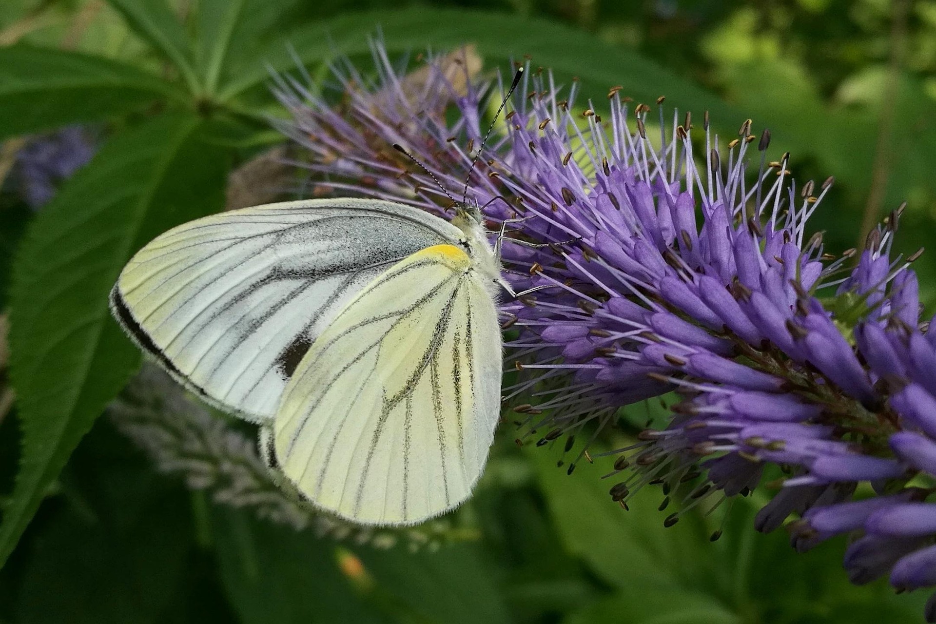 その正体は「スジグロシロチョウ」というシロチョウ科の仲間の蝶。モンシロチョウと良く似ていますが、黒いスジが何本か入っているのが特徴です。