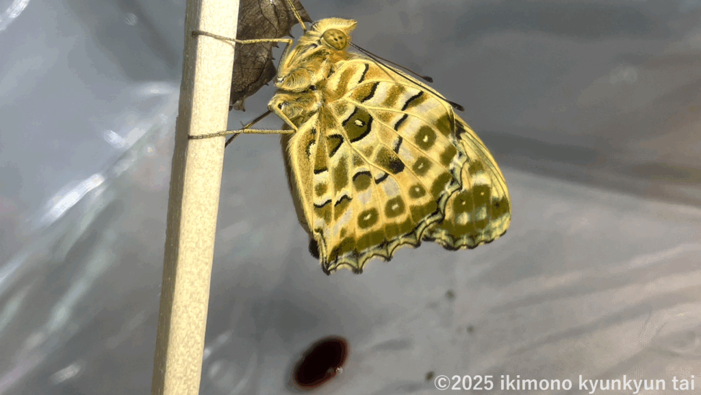 無事に蛹から出てきたツマグロヒョウモンは、次に羽を伸ばす工程に移ります。